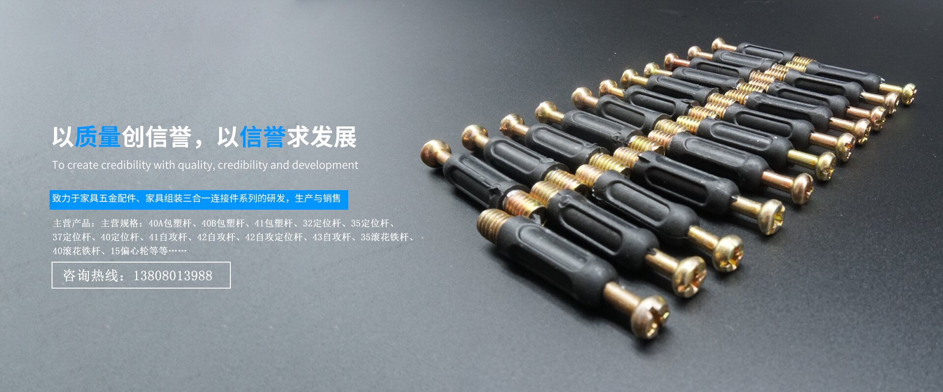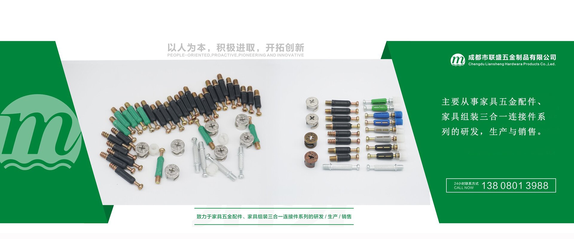 成都市聯(lián)盛五金制品有限公司成立于2012年,現(xiàn)擁有廠房面積16000平方米,主要從事家具五金配件、家具組裝三合一連接件系列的研發(fā),生產(chǎn)與銷售。公司目前主營產(chǎn)品:家具組裝三合一包塑桿、定位桿、鐵桿、滾花鐵桿、雙頭桿、木牙螺絲、板托中軸、隔板釘?shù)取?br> 公司現(xiàn)在具有雄厚的技術(shù)實力,從模具設(shè)計、模具制作到產(chǎn)品生產(chǎn)都有強大的技術(shù)團隊和管理團隊,擁有家具五金配件從業(yè)十年以上的技術(shù)人員與管理人員多名,另有多年五金配件生產(chǎn)工作經(jīng)驗的員工40余人,都有著豐富的生產(chǎn)經(jīng)驗和敬業(yè)精神。公司現(xiàn)擁有現(xiàn)代先進的五金生產(chǎn)設(shè)備150余臺,并且公司正在全面推行ISO9001:2016國際質(zhì)量管理體系,力求生產(chǎn)高效、節(jié)能,制造出質(zhì)量穩(wěn)定、安全,令客戶滿意的高品質(zhì)產(chǎn)品。